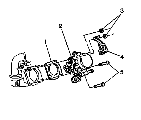 2. Install the throttle body (2) onto the intake manifold with the 2 bolts (5).