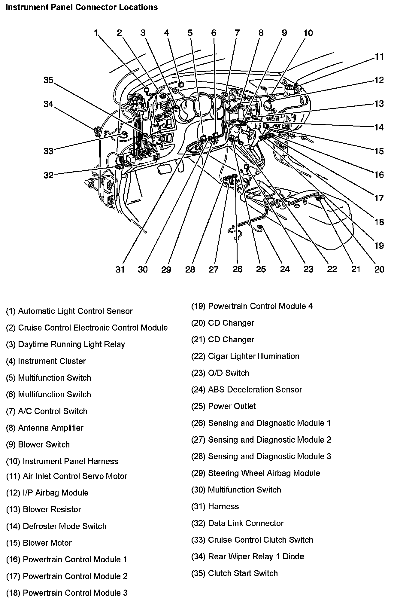 Instrument Panel Connector Locations: