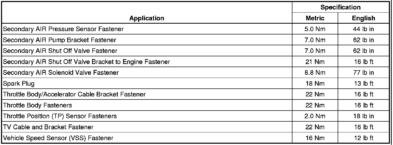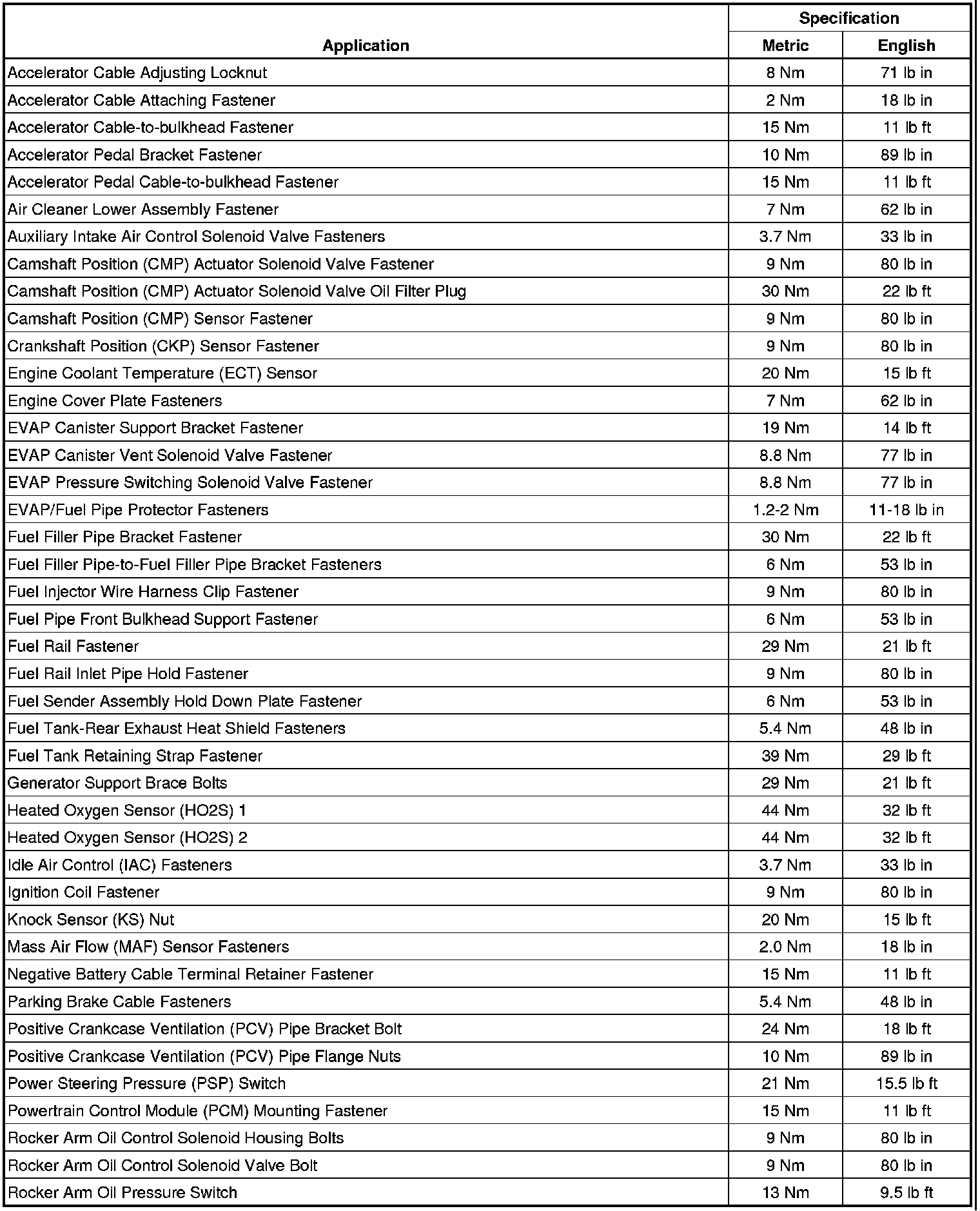 Fastener Tightening Specifications