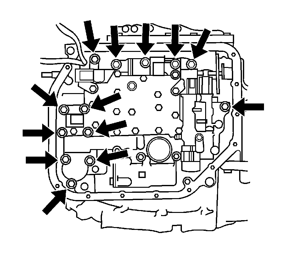 Remove the 13 valve body retaining bolts and the valve body.