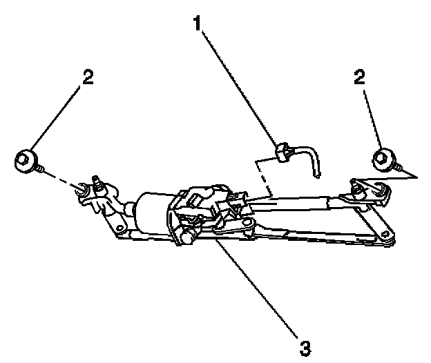5. Remove the wiper motor assembly (3) from the engine compartment.