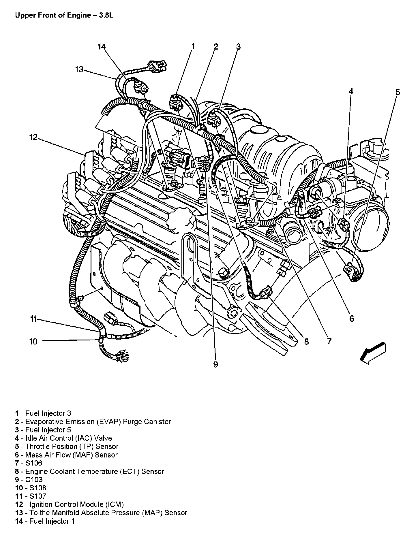 Upper Front Of Engine: