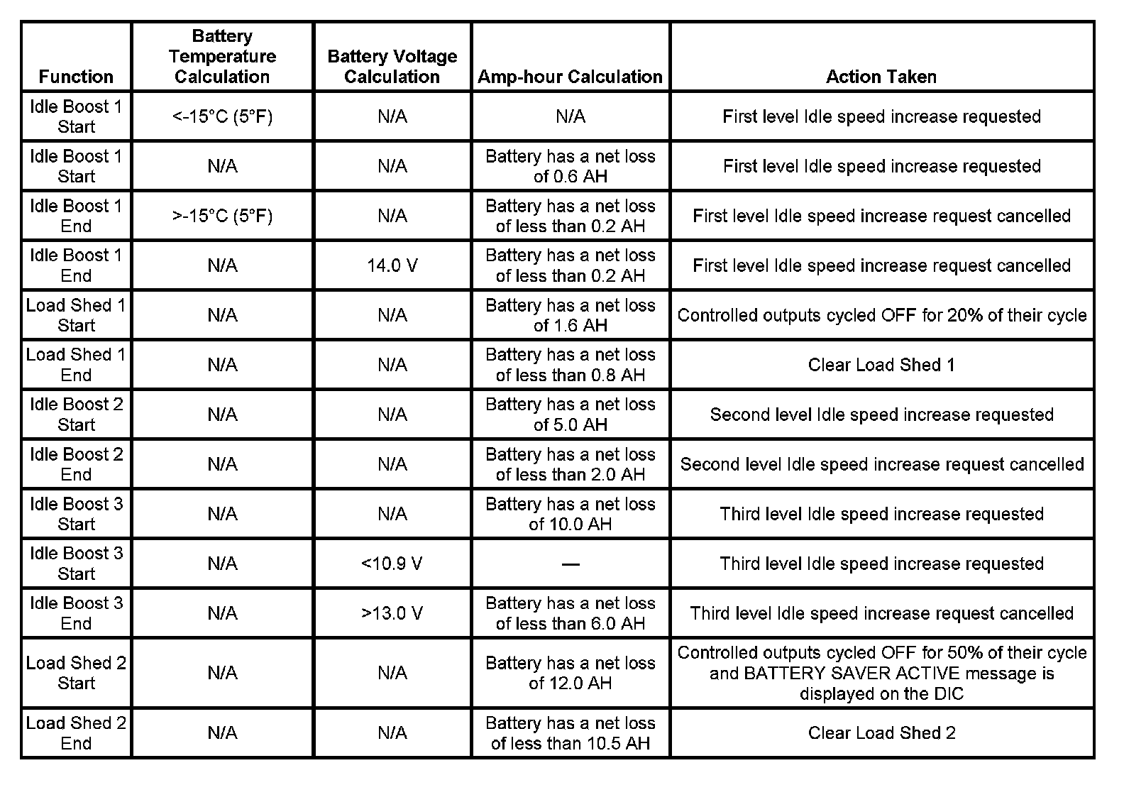 Each load management function, either idle boost or load-shed, is discrete. No two functions are implemented at the same time.