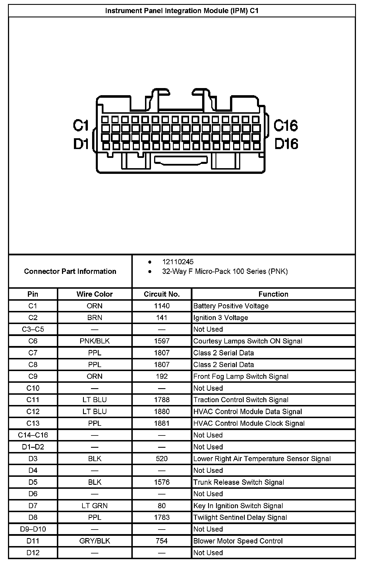 Instrument Panel Integration Module (IPM) C1 Part 2: