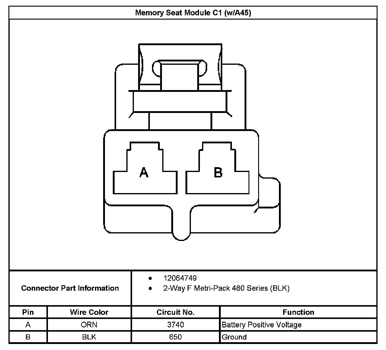 Memory Seat Module C2 (With RPO Code A45) Part 1: