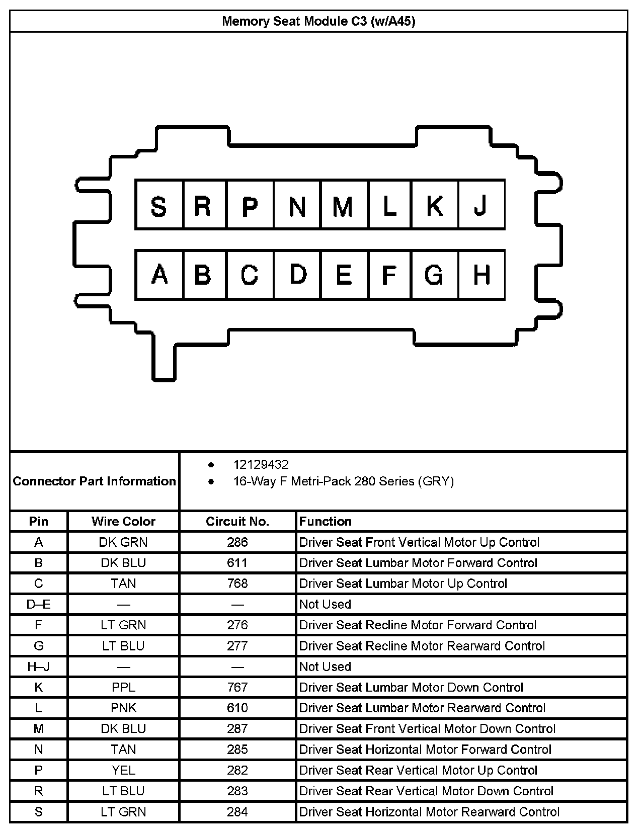 Memory Seat Module C2 (With RPO Code A45) Part 2: