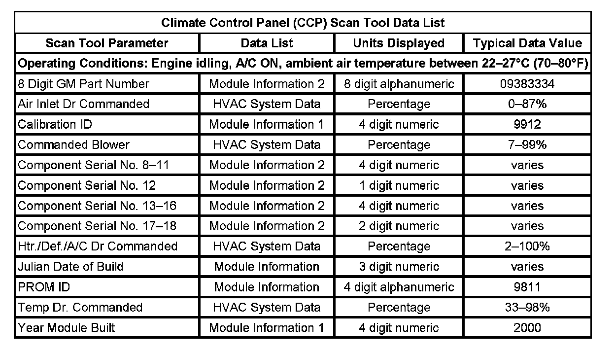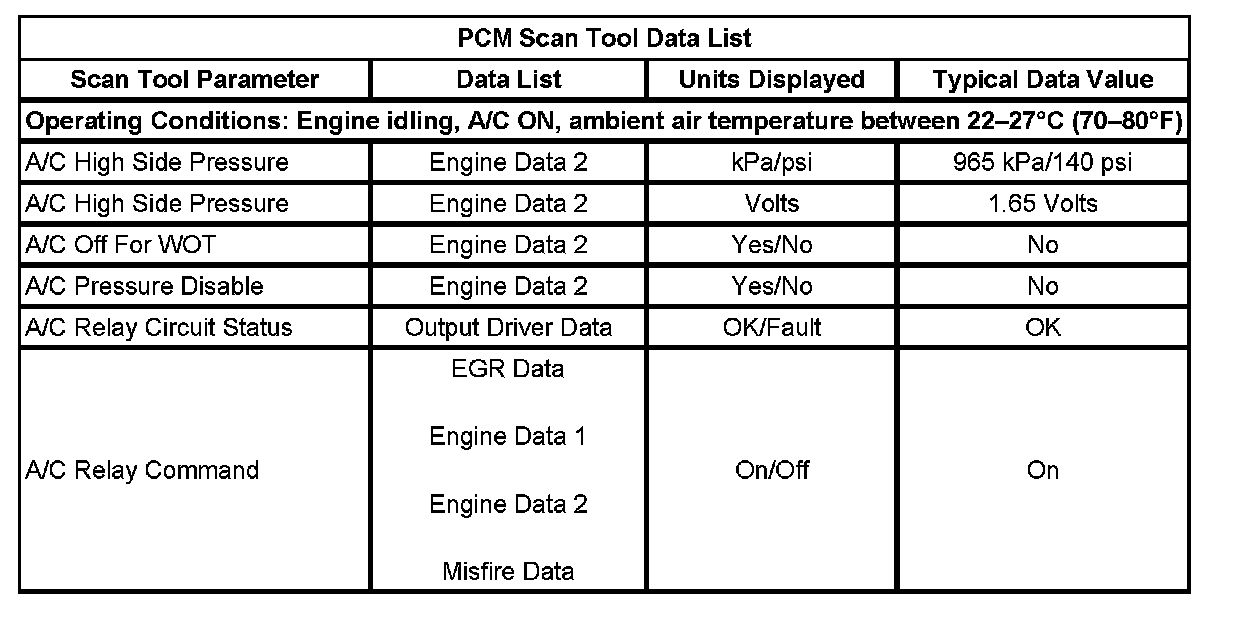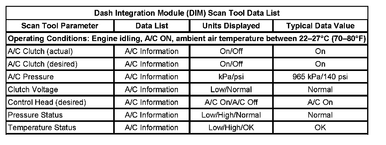 The scan tool data values were taken from a known good vehicle under the following conditions: