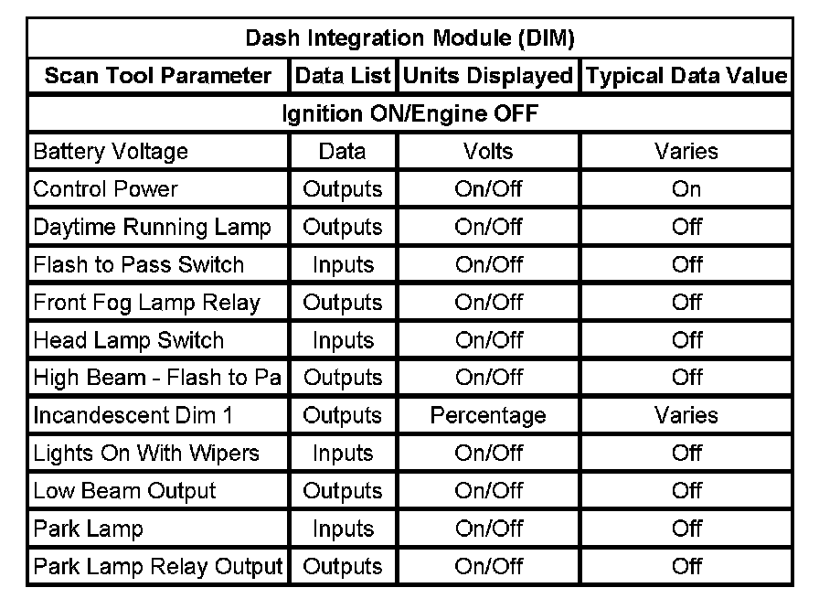 Scan Tool Data List - Dash Integration Module (DIM)