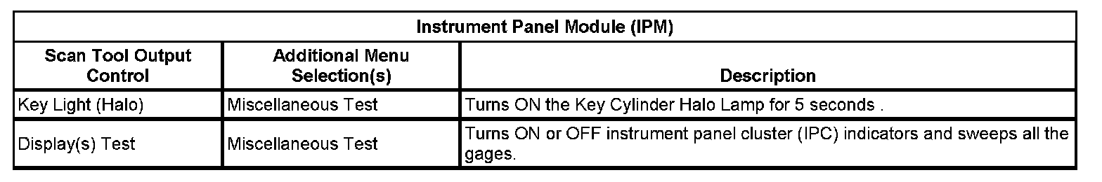 Scan Tool Output Controls - Instrument Panel Module (IPM)