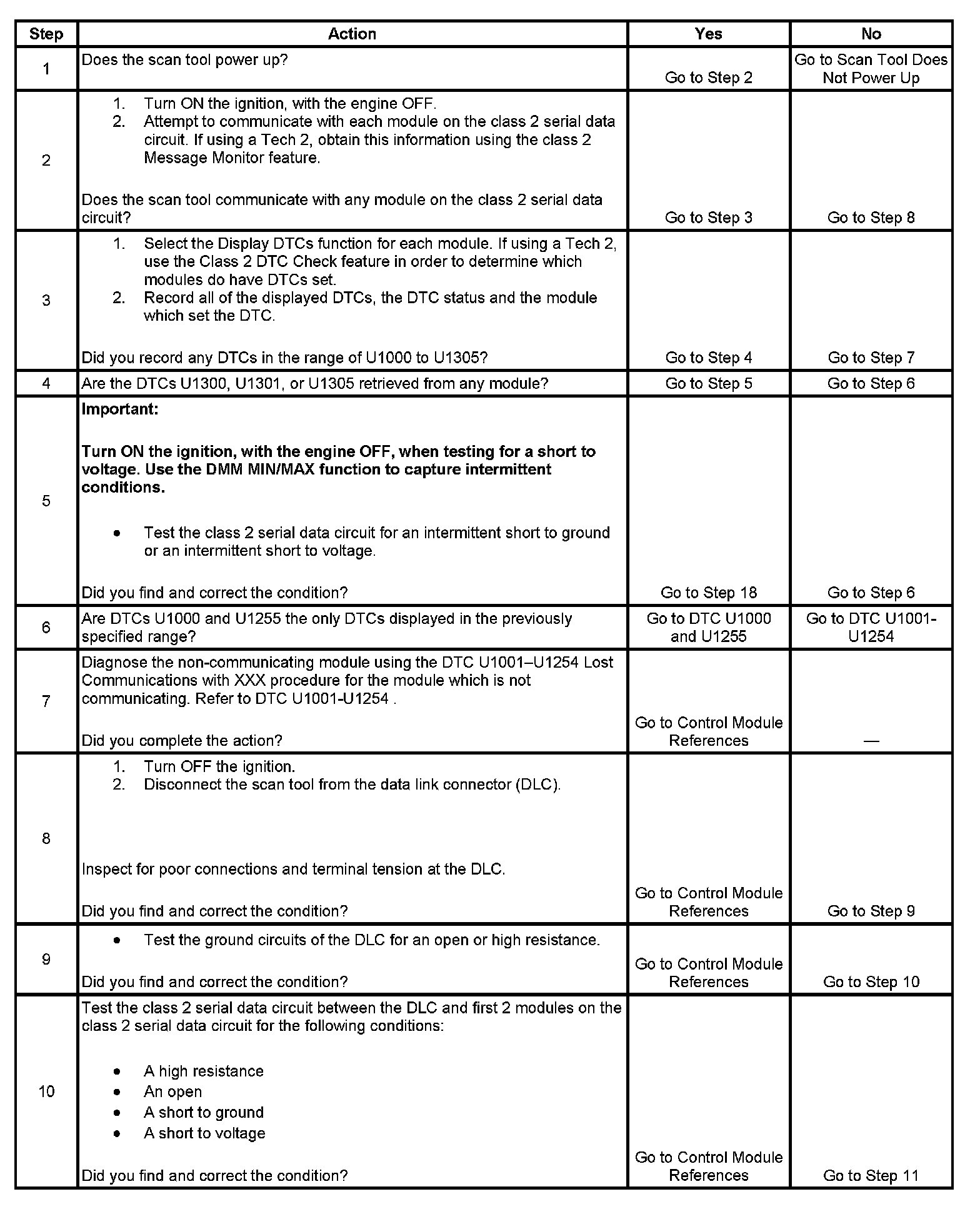 12. An open between the DLC and the class 2 serial data circuit will prevent the scan tool from communicating with any module. This condition will not set a DTC.