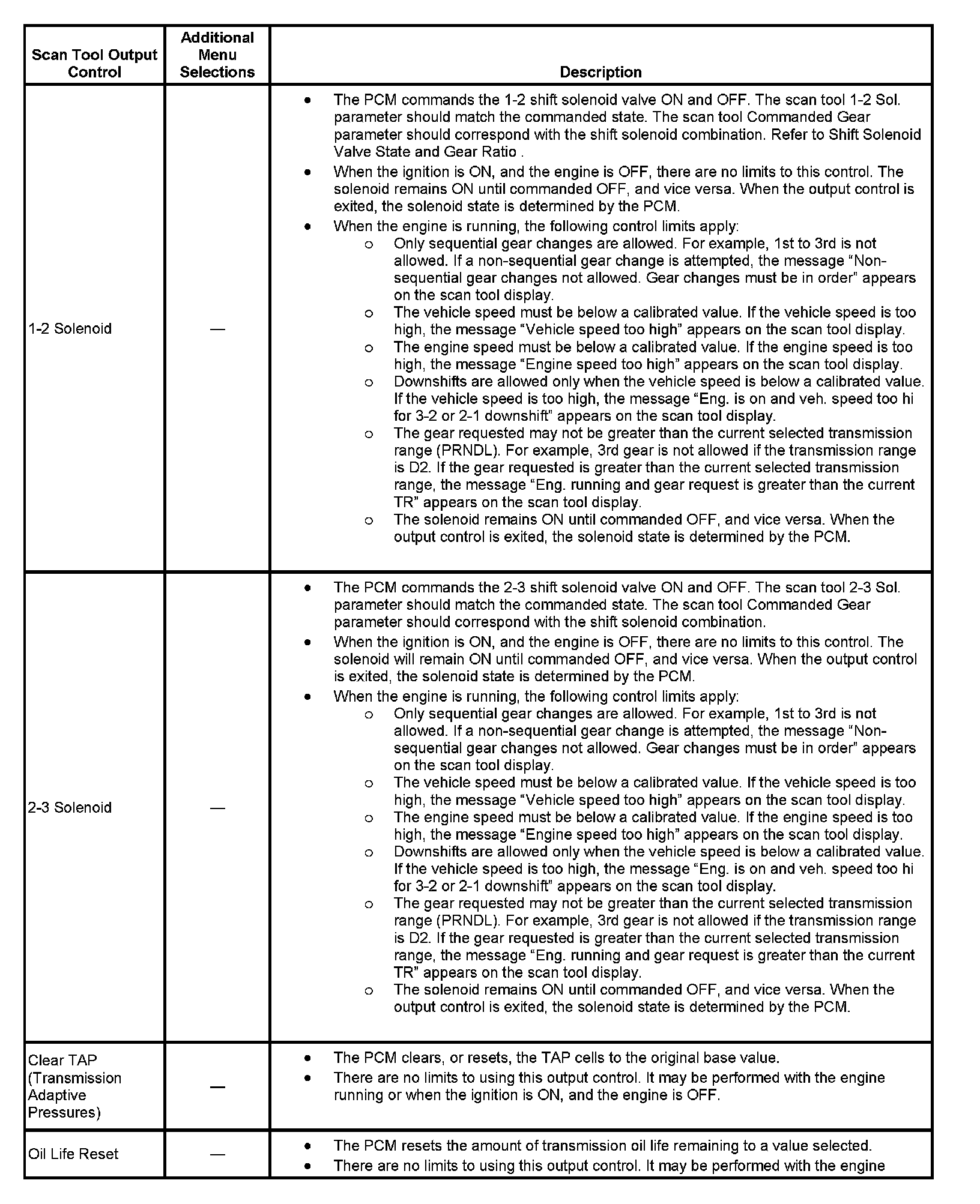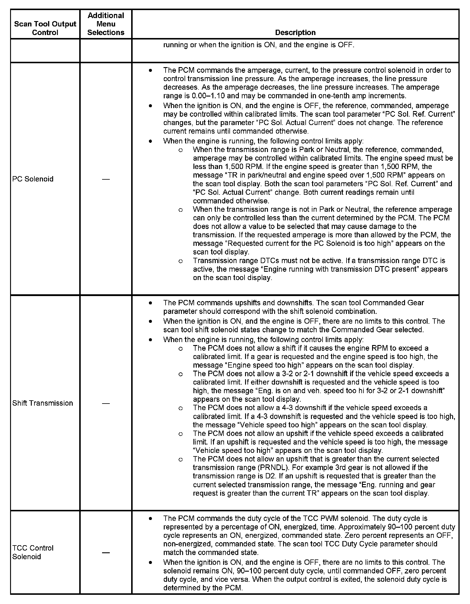 Scan Tool Output Controls