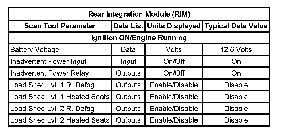 Normal Scan Tool Data Values - Rear Integration Module (RIM)