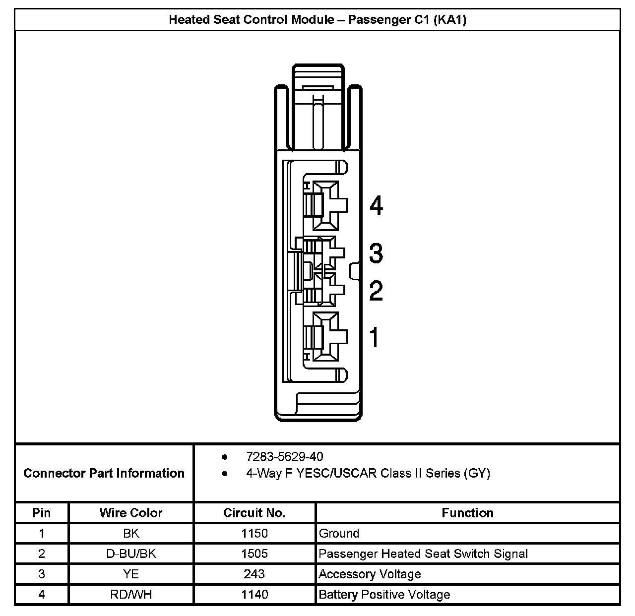 Heated Seat Control Module - Passenger C1 (With RPO Code KA1):