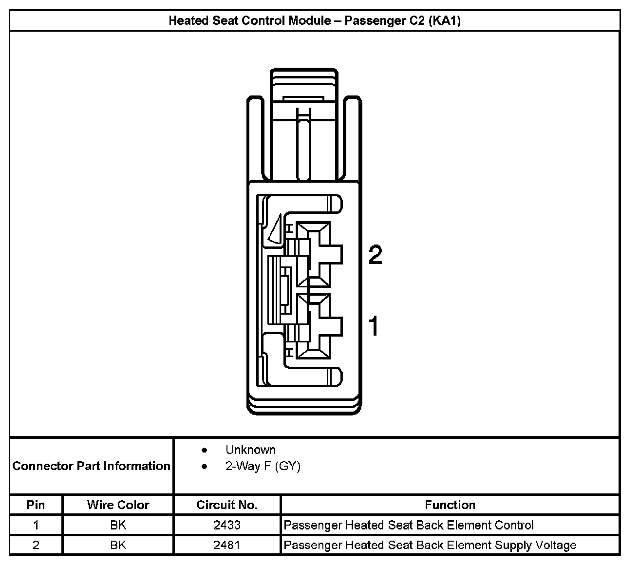 Heated Seat Control Module - Passenger C2 (With RPO Code KA1):