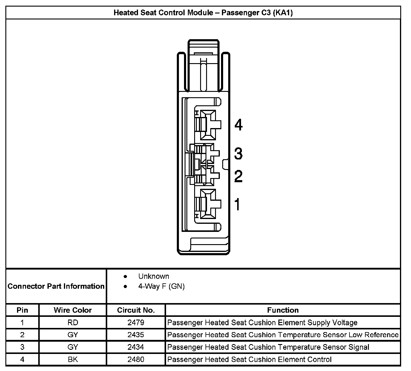 Heated Seat Control Module - Passenger C3 (With RPO Code KA1):
