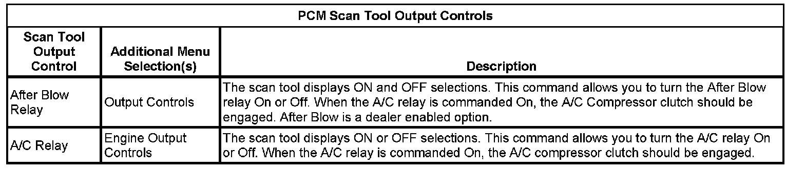 PCM Scan Tool Output Controls: