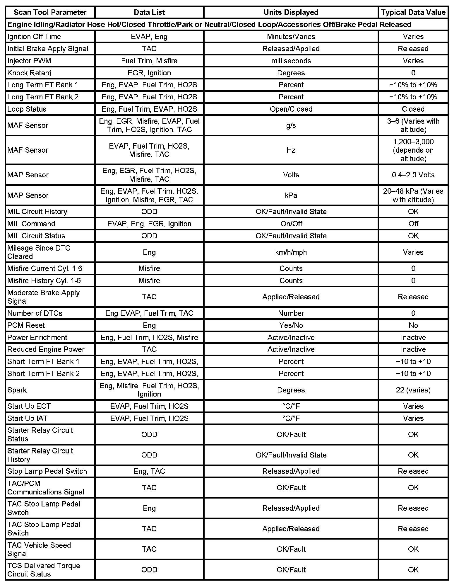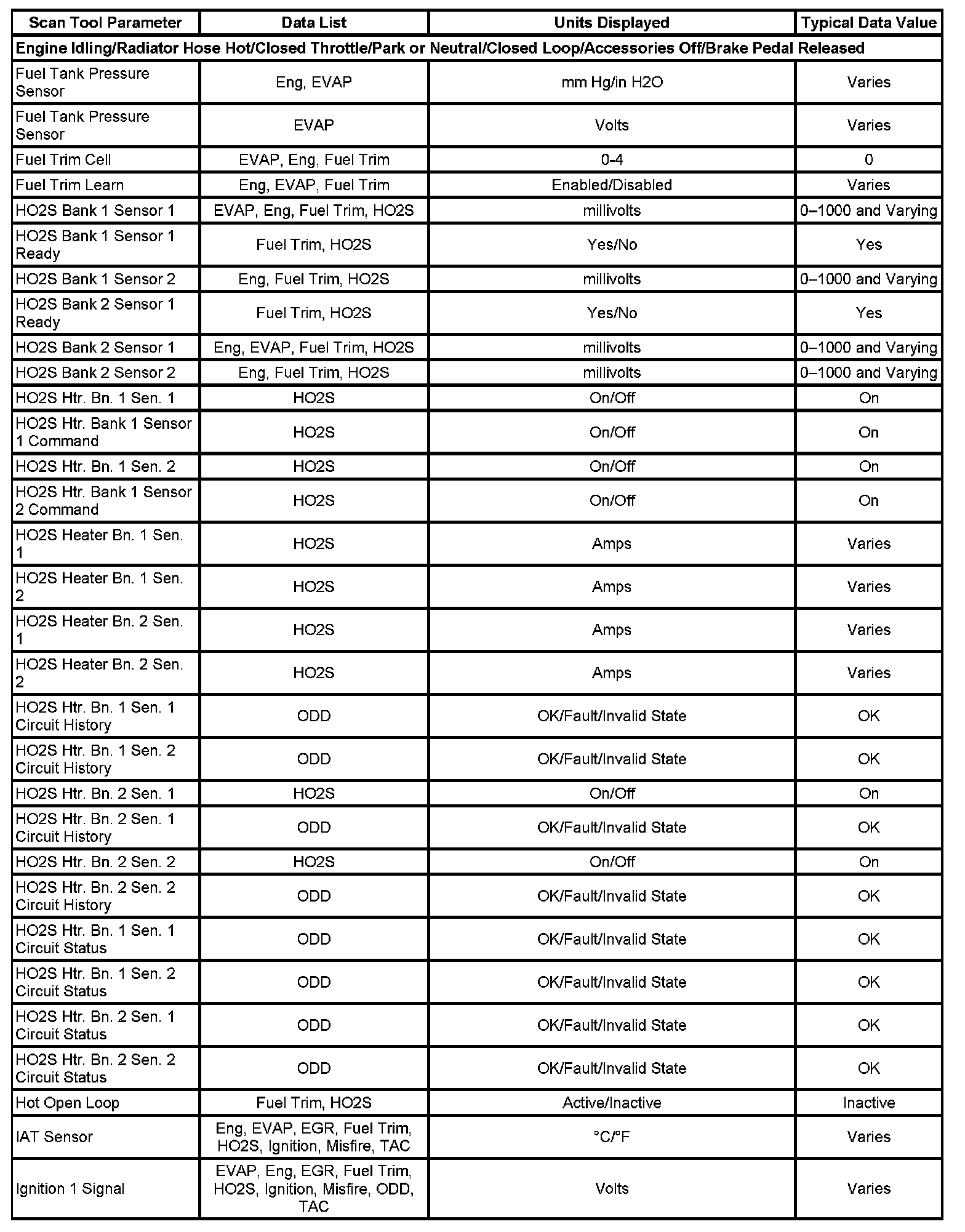The scan tool values from a properly running engine may be used for comparison with the engine you are diagnosing. The Engine Scan Tool Data List represents values that would be seen on a normally running engine.