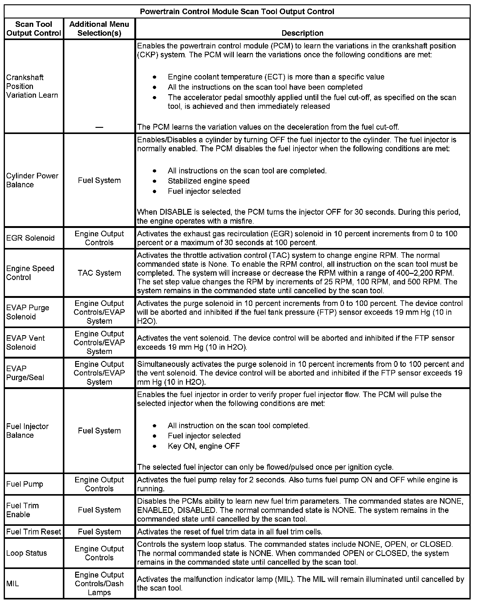 Powertrain Control Module Scan Tool Output Control Part 2: