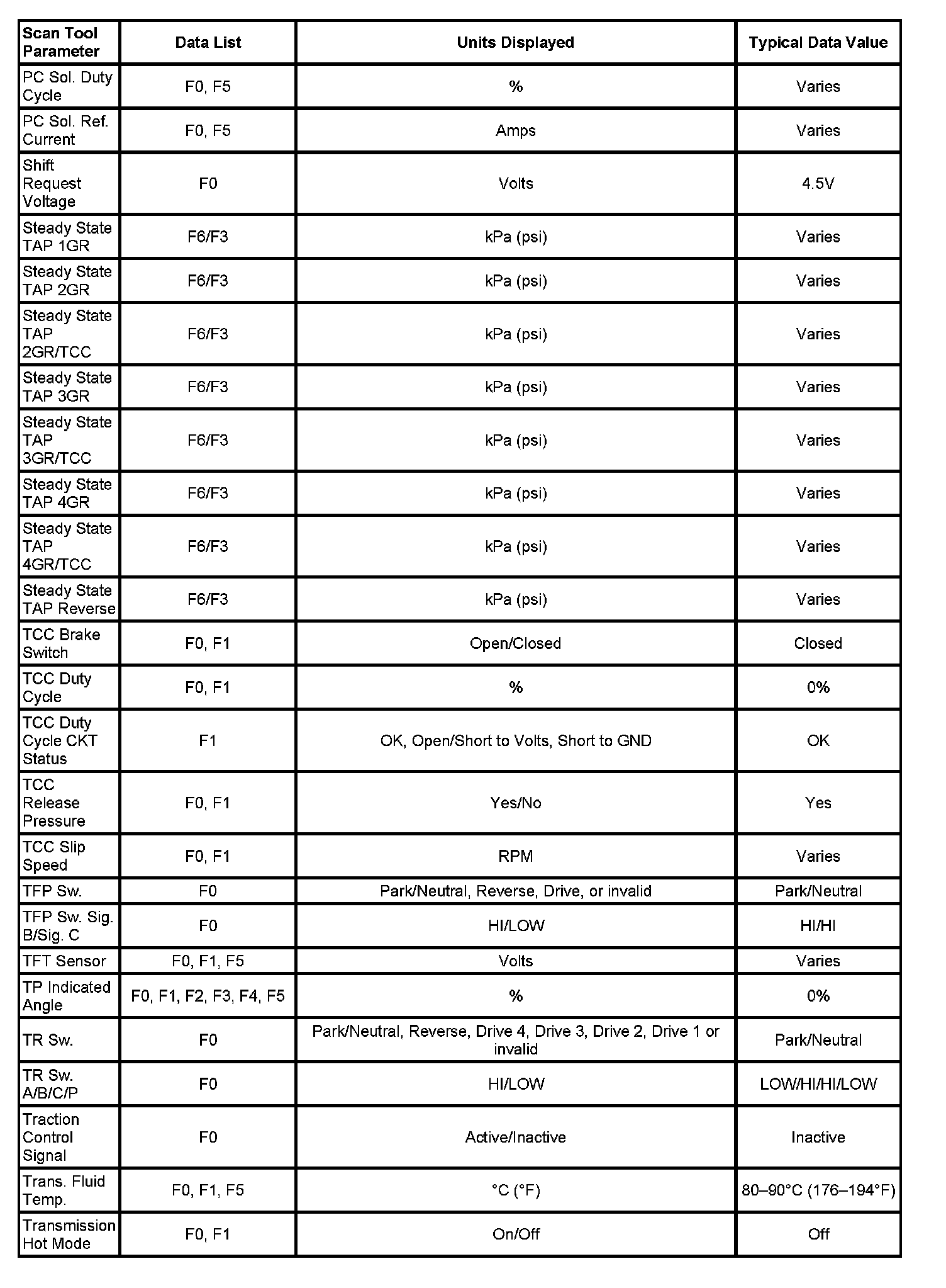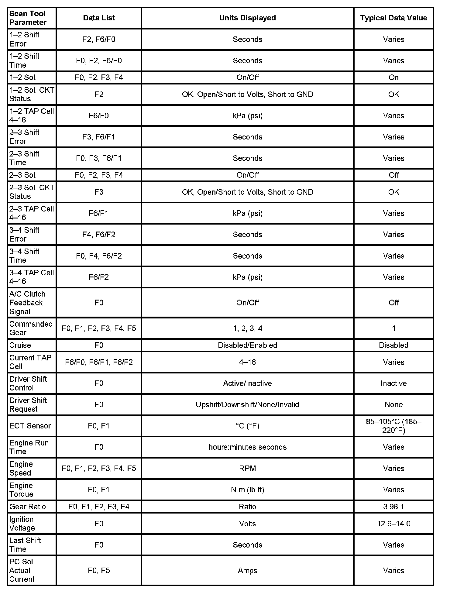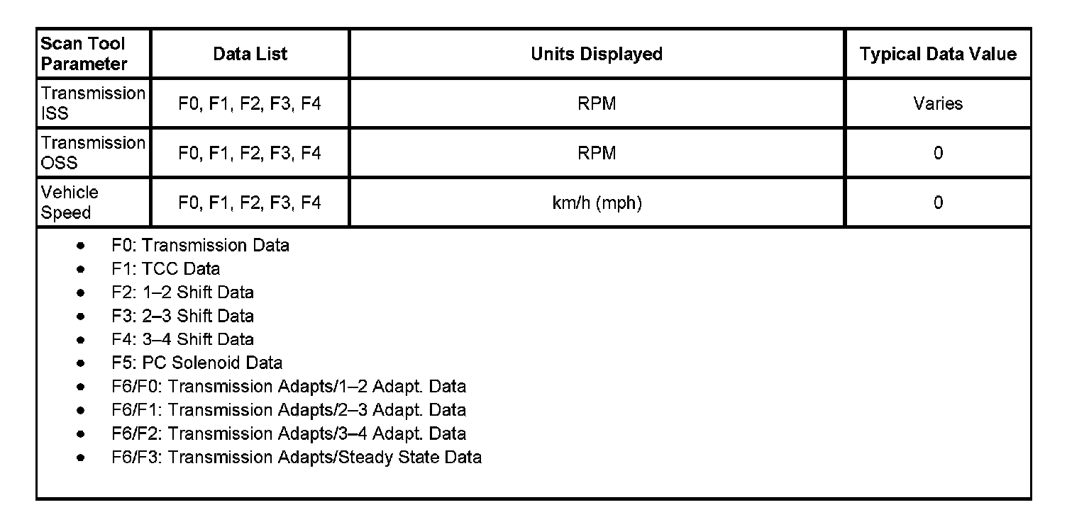 Only the parameters listed are used in this information for diagnosing. If a scan tool displays other parameters, the values are not recommended by General Motors for use in diagnosis.