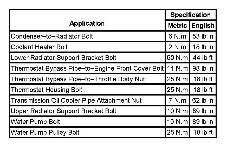 Fastener Tightening Specifications: