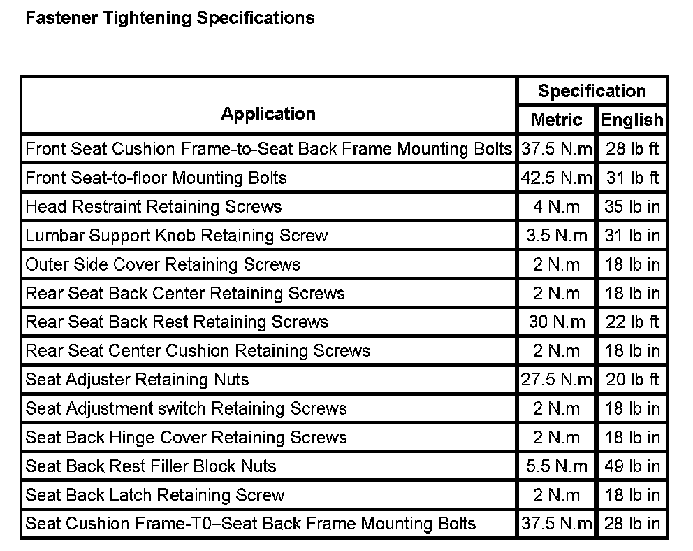 Seats: Specifications