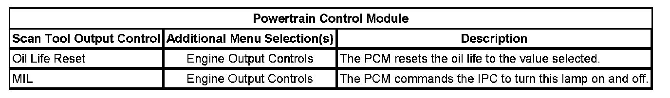 Scan Tool Output Controls - Powertrain Control Module (PCM)