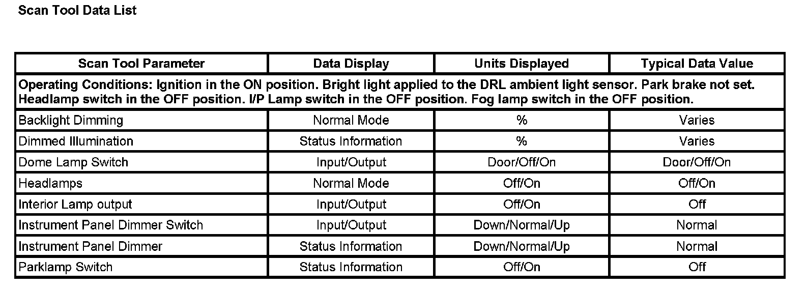 Scan Tool Data List: