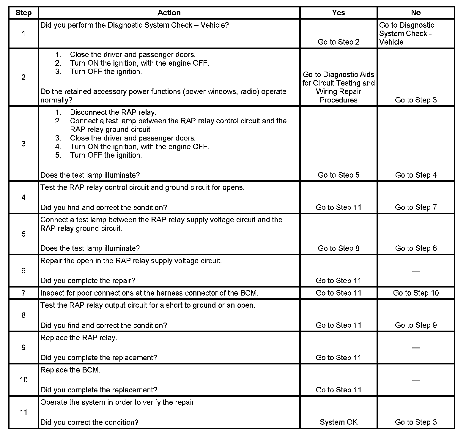 Retained Accessory Power (RAP) Inoperative