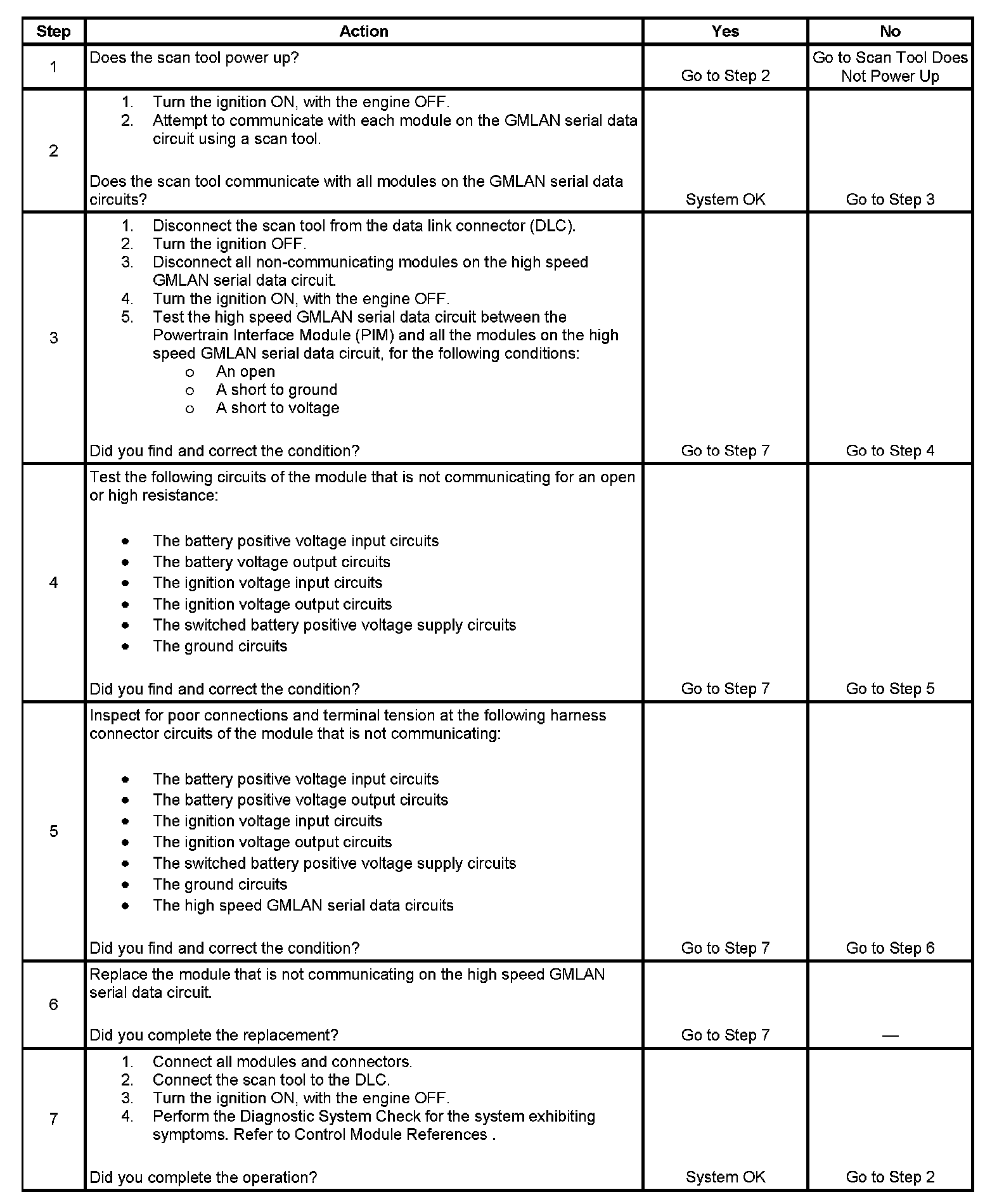 The engine will not start when there is a total malfunction of the GMLAN serial data circuits while the engine is not running. The following conditions may cause a total loss of GMLAN data communication: