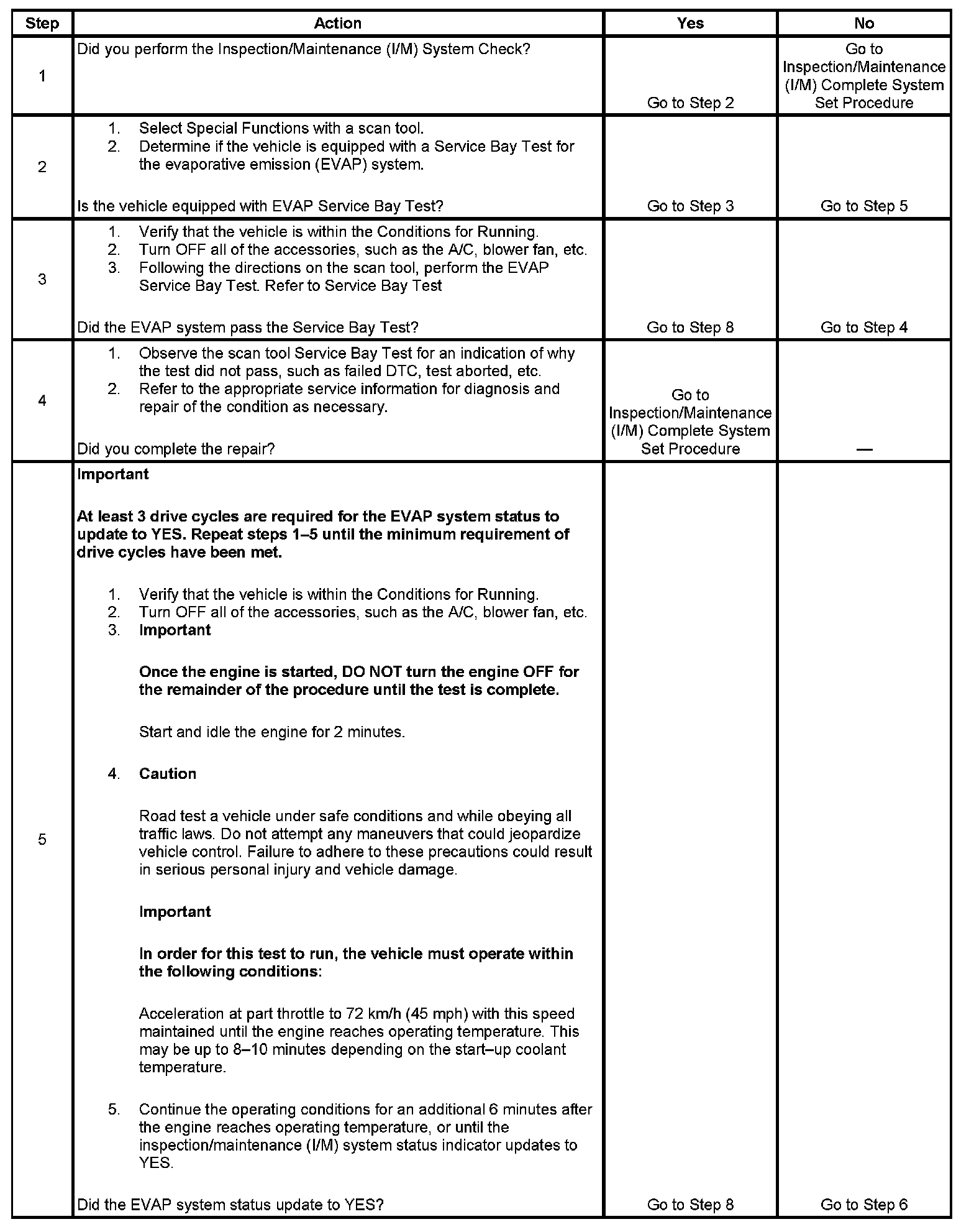 I/M EVAP System Set Procedure