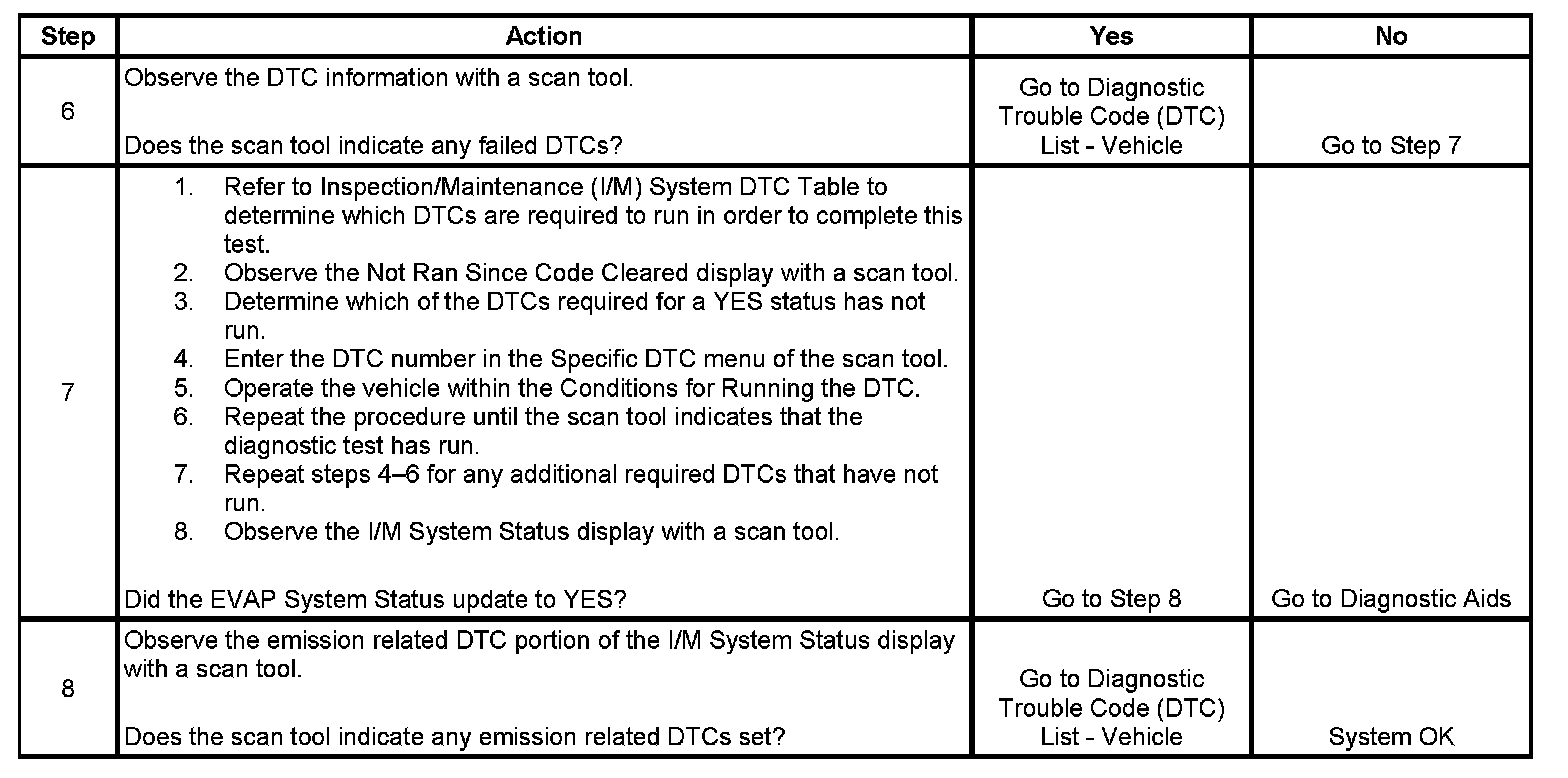 This test satisfies the enable criteria necessary to execute inspection/maintenance (I/M) readiness diagnostics for the evaporative emission (EVAP) system. The test may be used to set the I/M system status indicators to YES. Service bay tests are included on the scan tool for some systems depending upon vehicle make and model. The test is designed to allow the EVAP diagnostic tests to run in service bay conditions. Ensure that the vehicle meets the requirements listed in Conditions for Running before performing either EVAP system test. Failure to meet the necessary requirements may produce inaccurate test results.