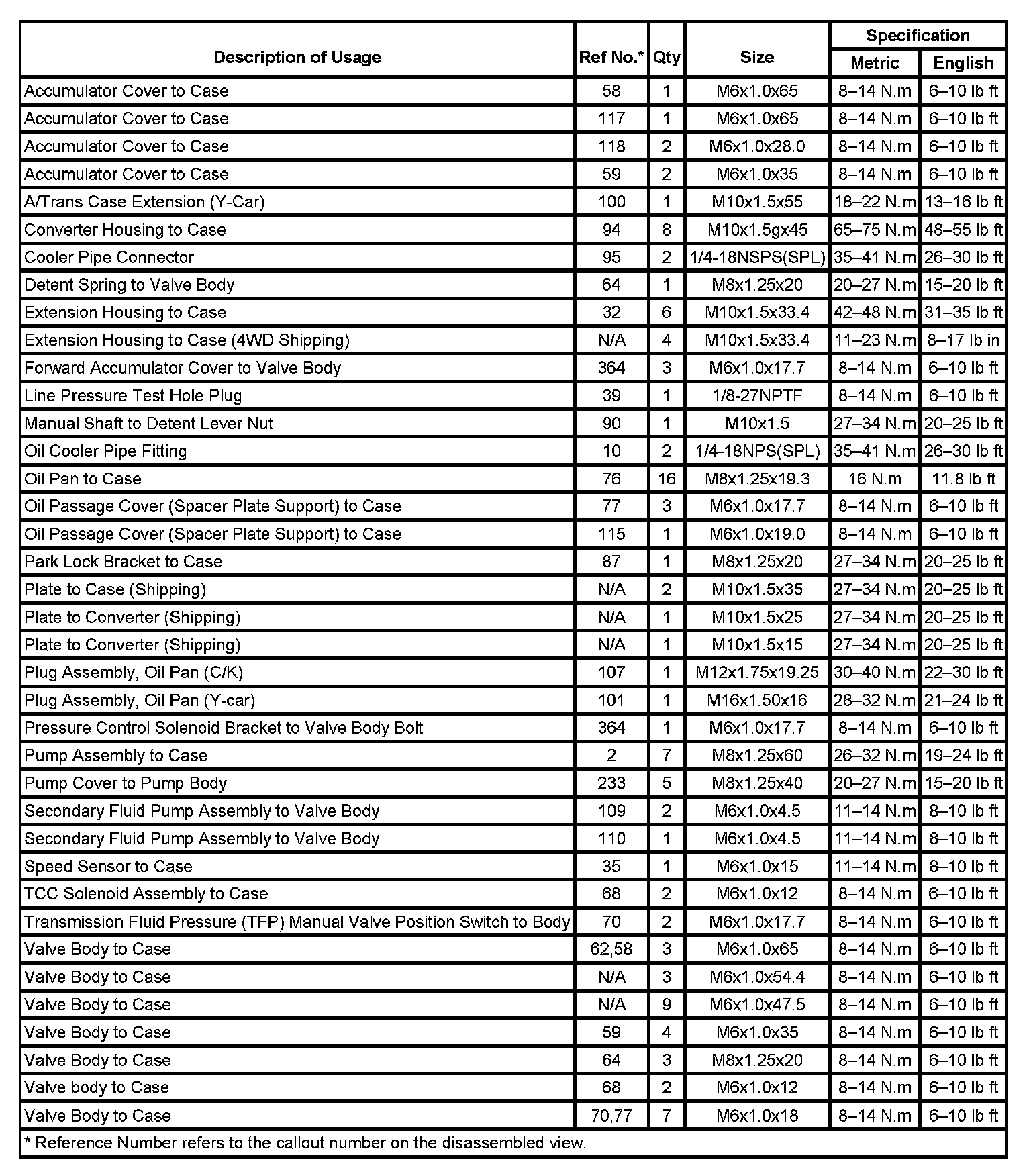 Fastener Tightening Specifications: