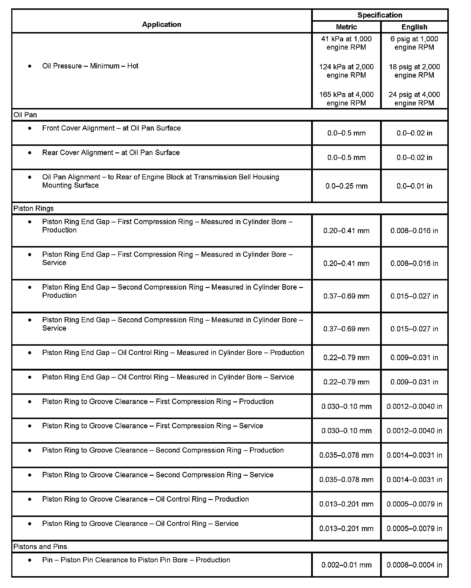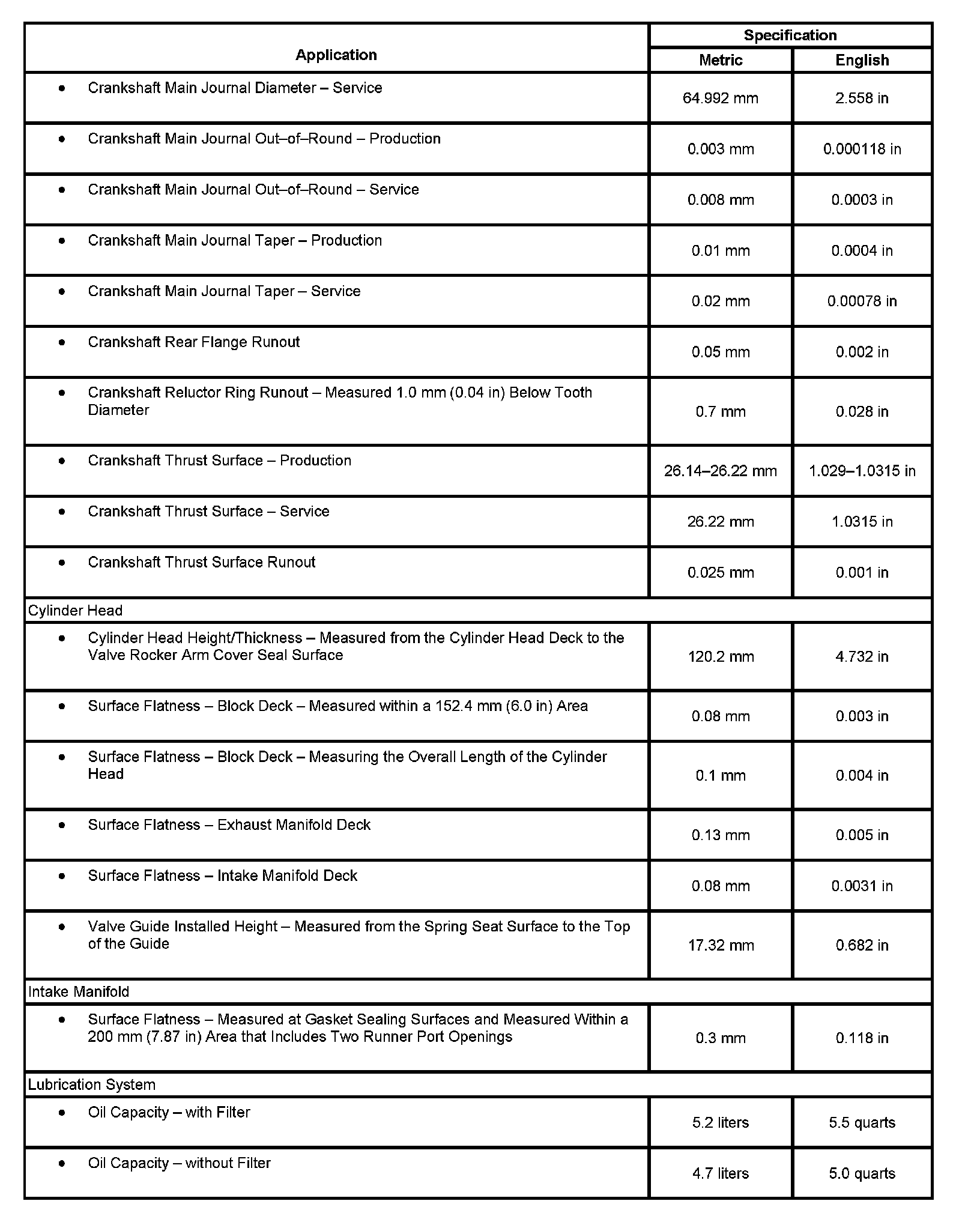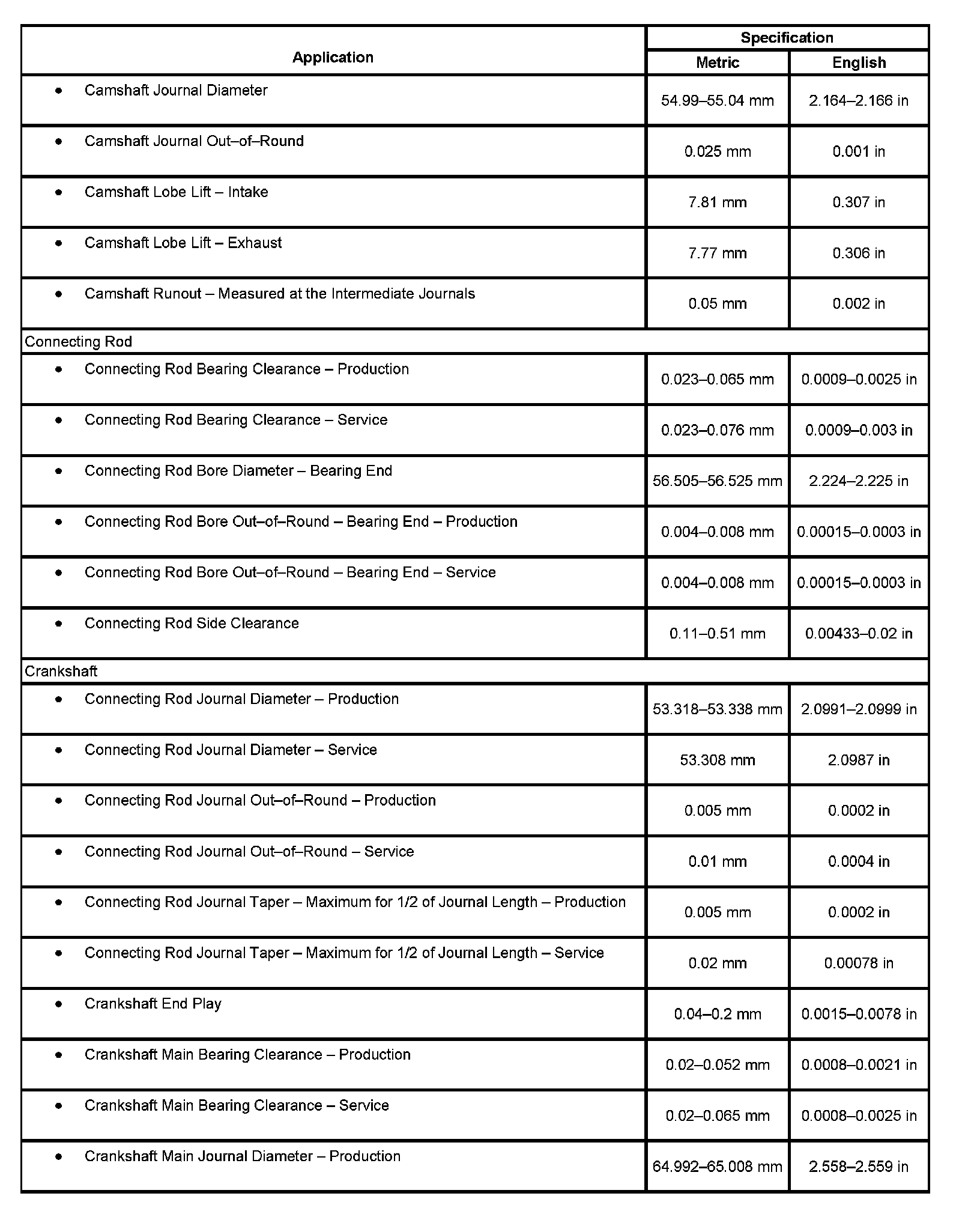 Engine Mechanical Specifications
