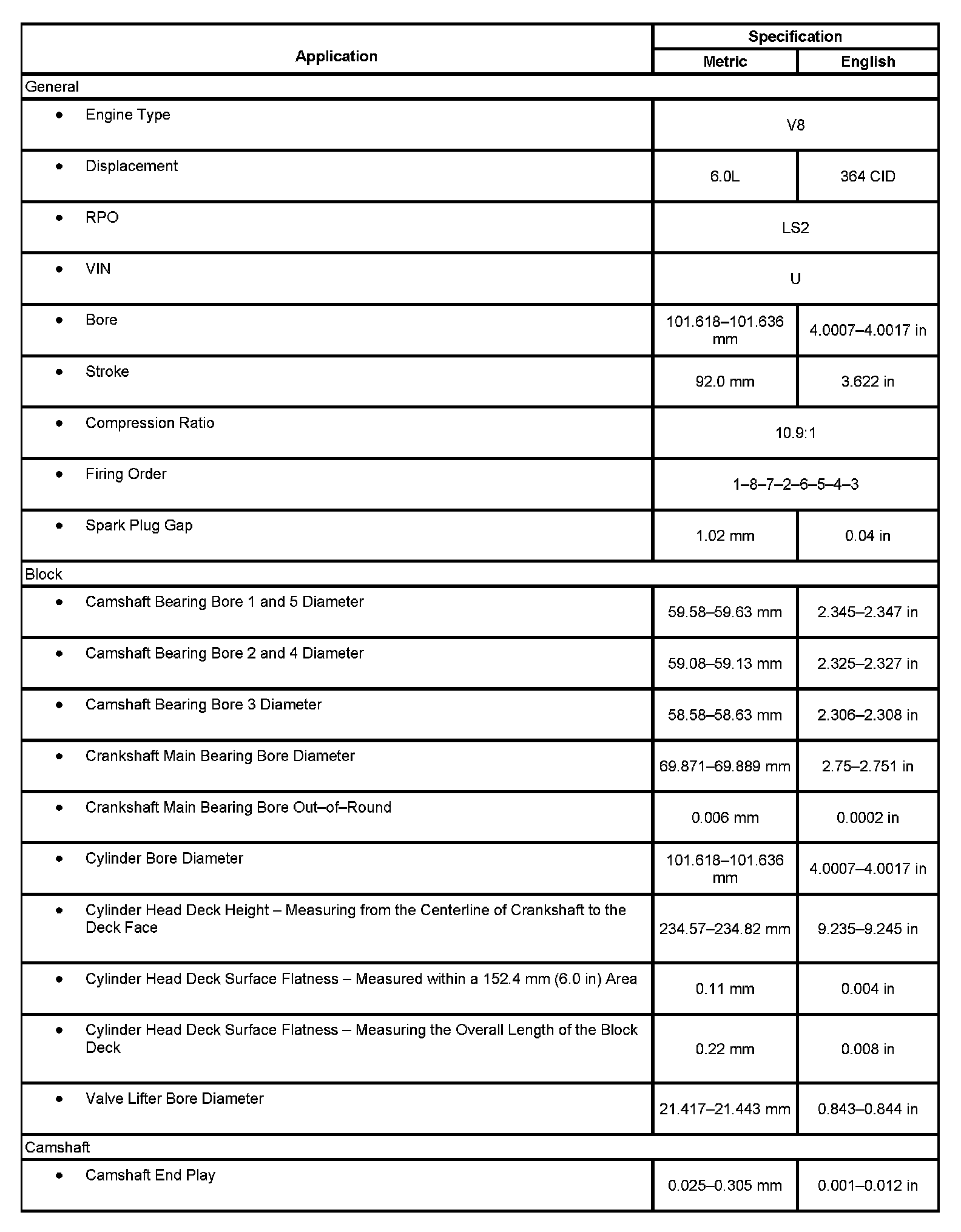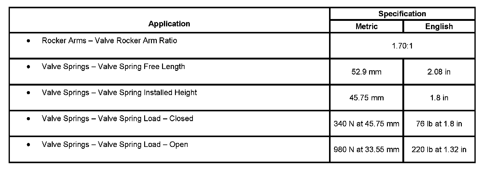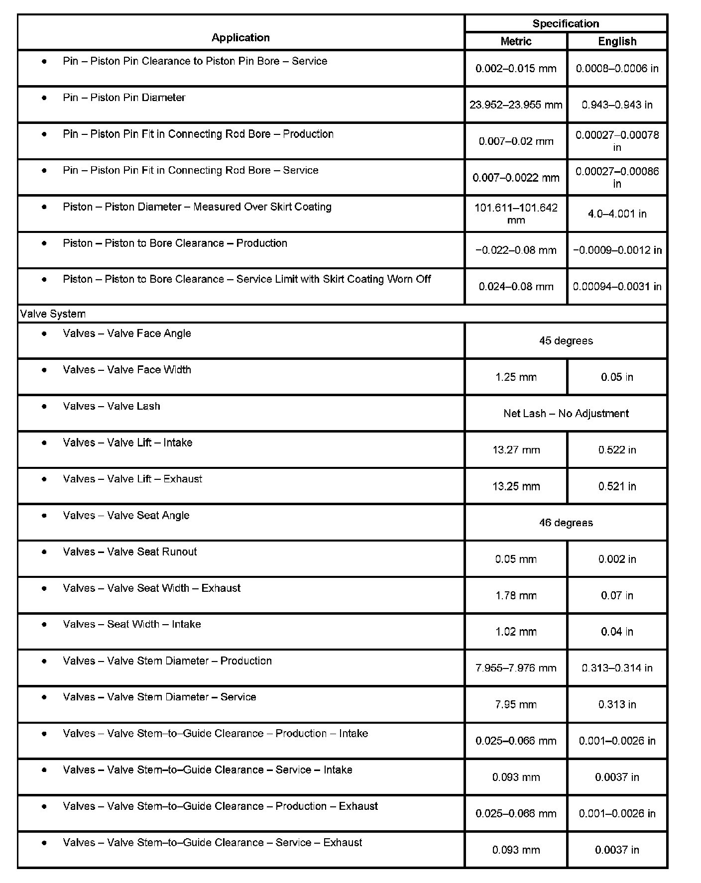 Engine Mechanical Specifications