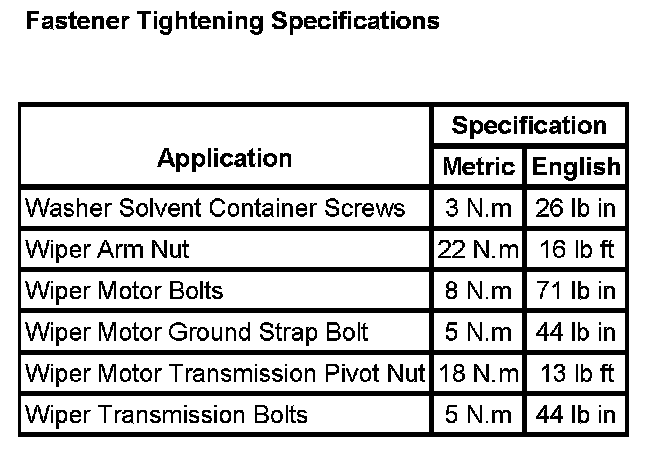 Wiper and Washer Systems: Specifications
