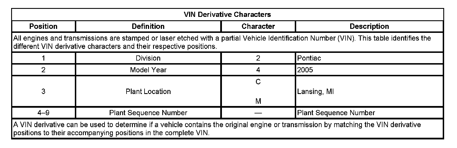 VIN Derivative Characters: