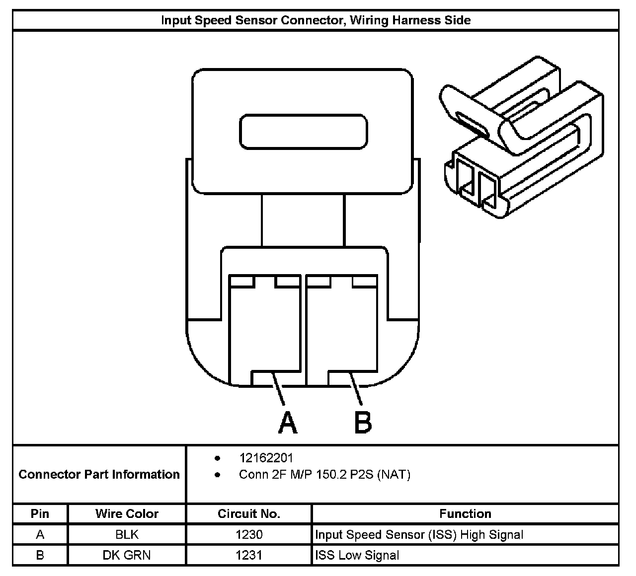 Input Speed Sensor Connector, Wiring Harness Side: