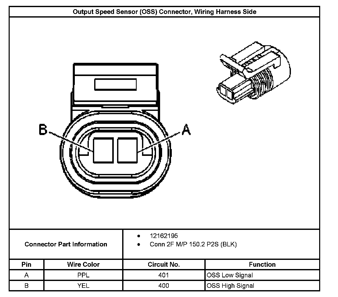 Output Speed Sensor (OSS) Connector, Wiring Harness Side: