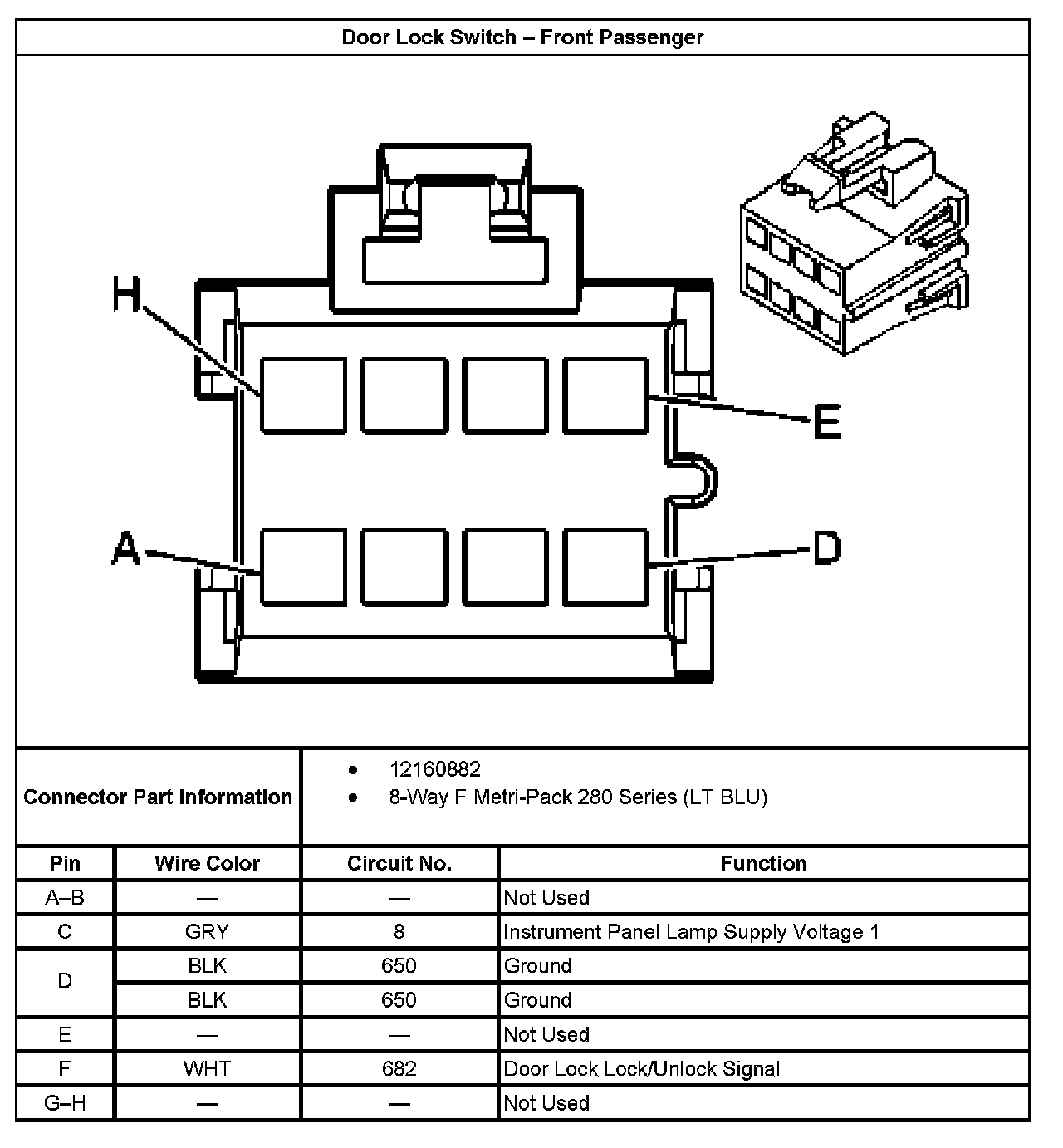 Door Lock Switch - Front Passenger: