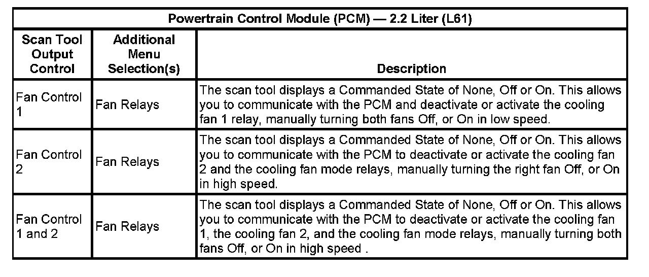 Scan Tool Output Controls