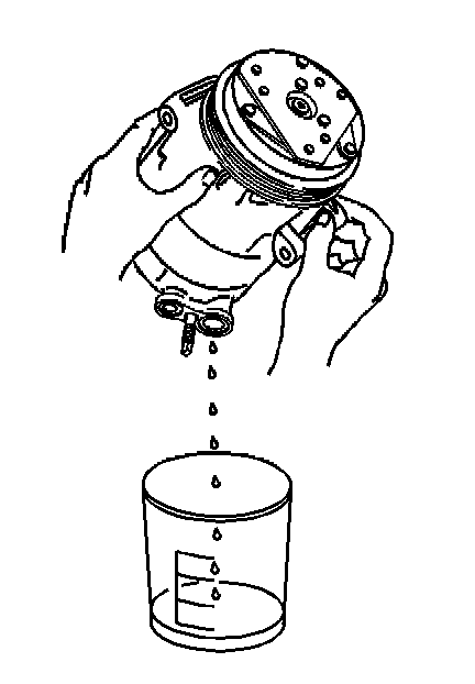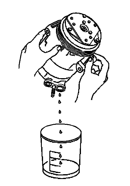 3. Measure and record the amount of oil drained from the removed compressor. This measurement will be used during installation of the replacement compressor.
