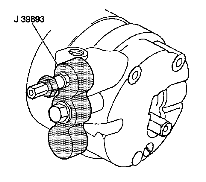 1. With the sealing washers in place, install the J 39893 on the rear head of the compressor.