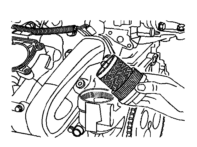 Notice: Over torquing the oil filter cap may cause damage to the oil filter cap resulting in an oil leak.