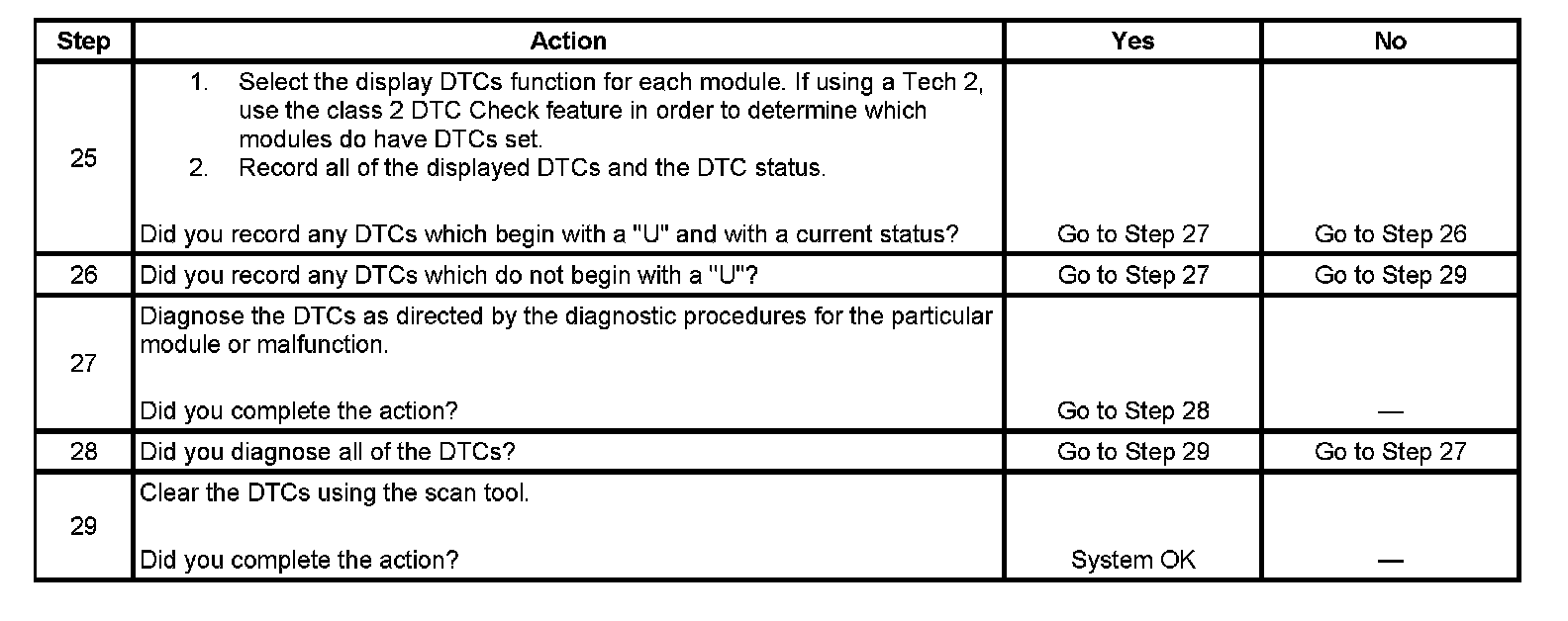 25. If there are no current DTCs that begin with a "U", the communication malfunction has been repaired.