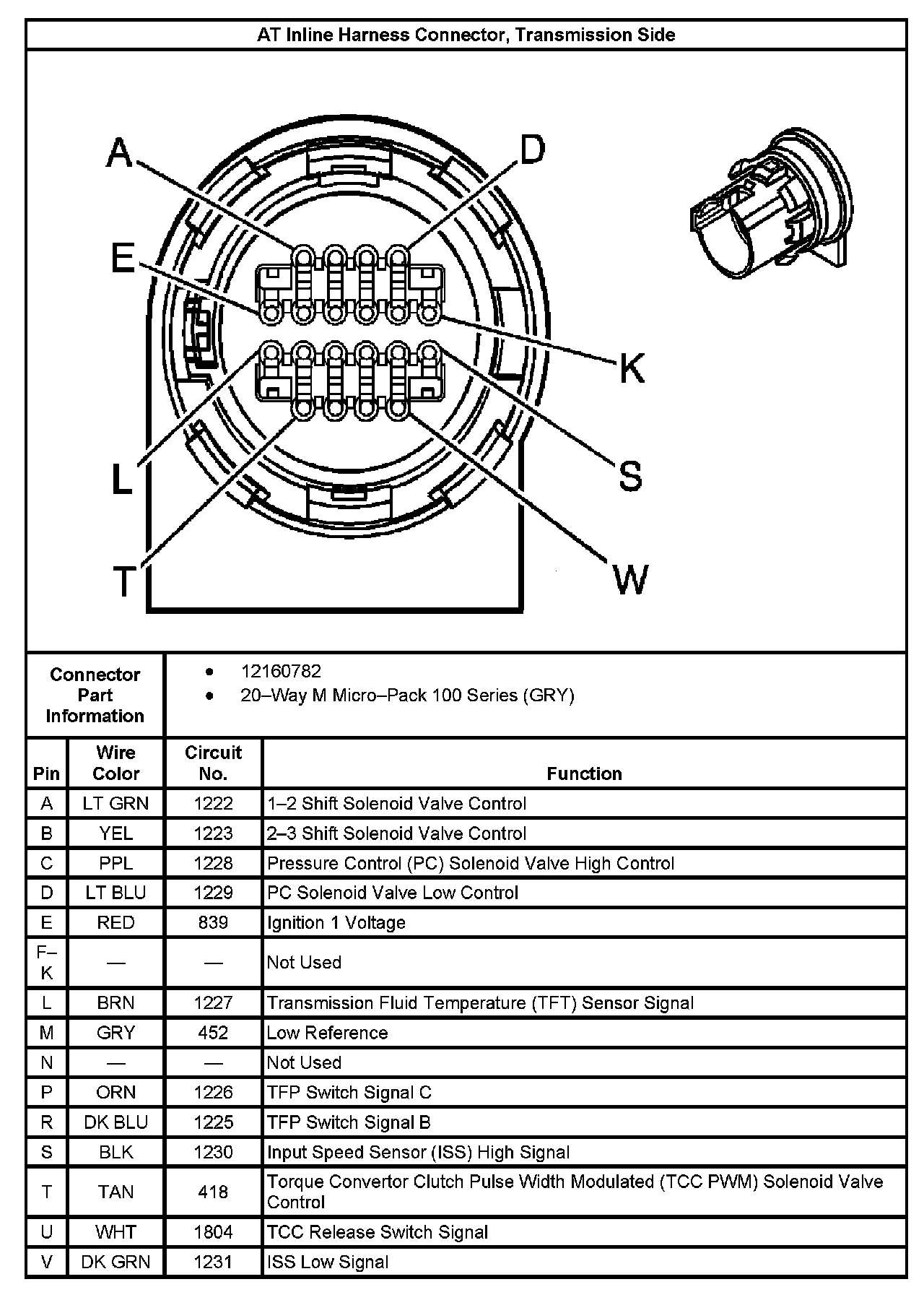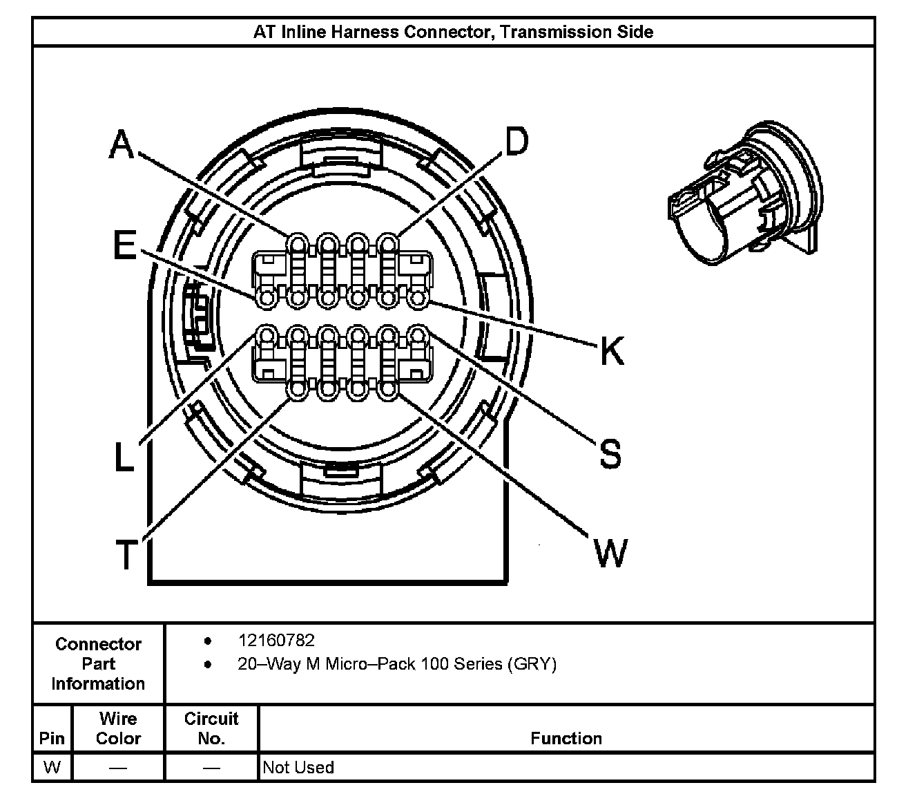 AT Inline Harness Connector, Transmission Side: