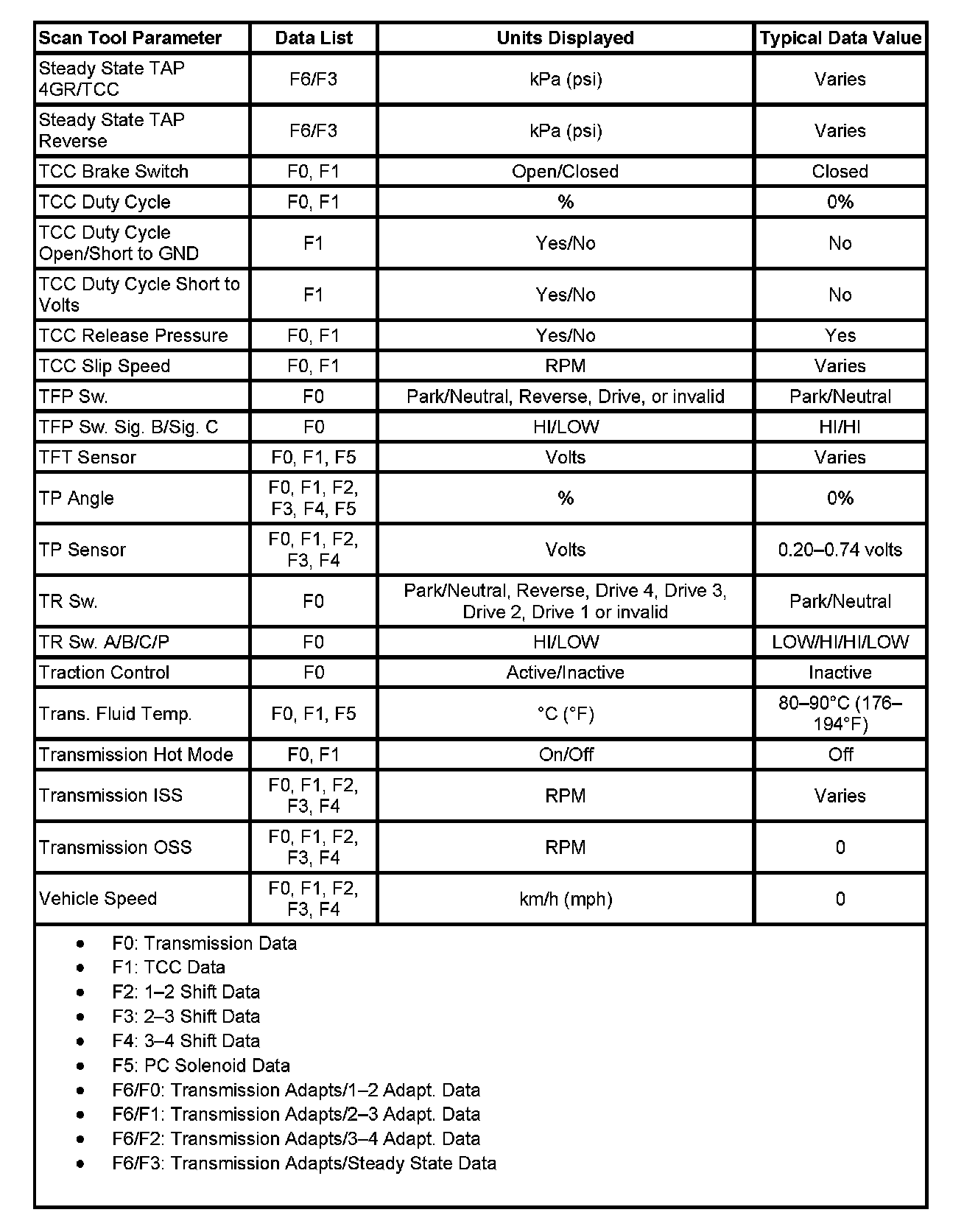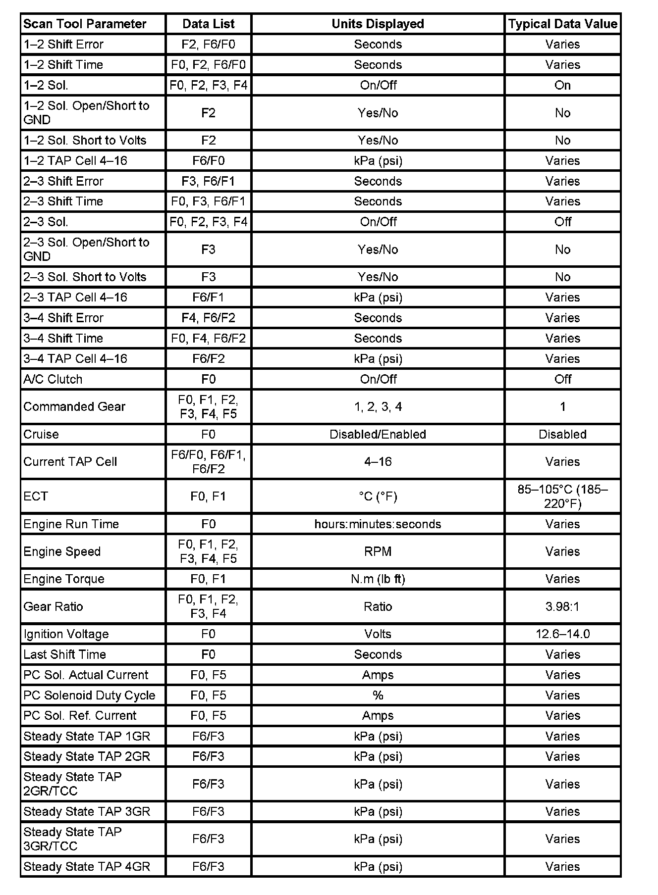 Only the parameters listed below are used in this manual for diagnosing. If a scan tool displays other parameters, the values are not recommended by General Motors for use in diagnosis.
