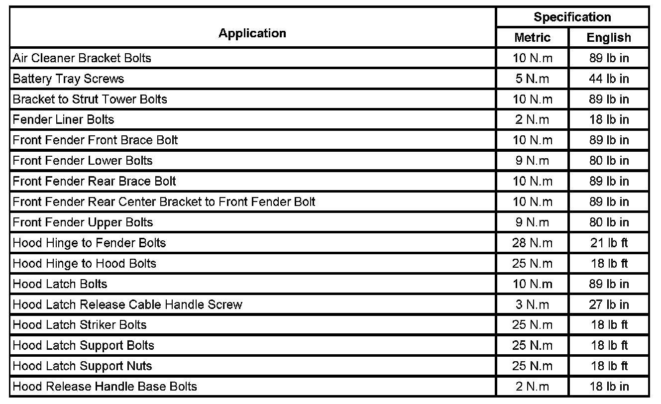 Fastener Tightening Specifications