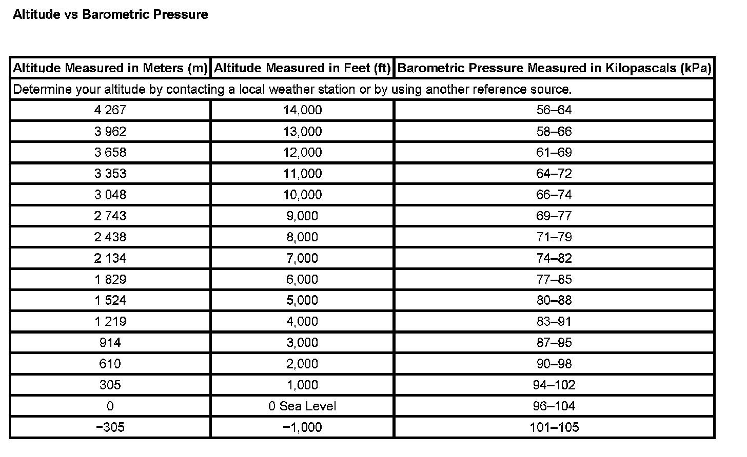 Pressure, Vacuum and Temperature Specifications