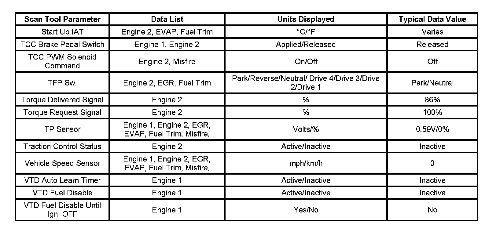 For scan tool parameter definitions, refer to Scan Tool Data Definitions. Scan Tool Data, Normal Values and Definitions