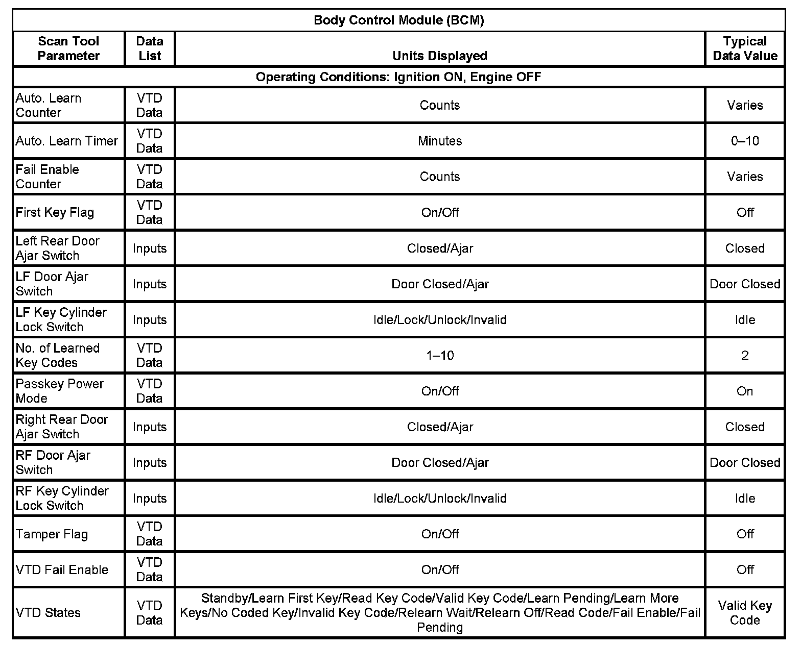 Scan Tool Data List - Antitheft System